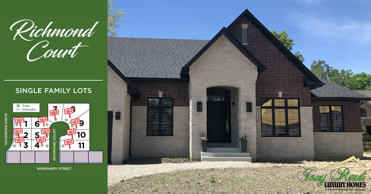 There is currently one lot available on Richmond Court, located off of Normandy Street in the heart of LaSalle. Richmond Court is surrounded by walking trails and is minutes away from all amenities, schools, parks, and the Ambassador Bridge. This prestigious development features eight large cul-de-sac lots, with luxurious custom homes built to suit in ranch and two-storey layouts.